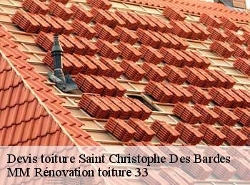 Demander un devis toiture à Saint Christophe Des Bardes est incontournable du moment où vous envisagez de faire des travaux de toit. C’est une action qui vous permettra de vous préparer financièrement aux travaux que vous comptez faire, que ce soit pour embellir la toiture ou s’il s’agit d’une construction en neuf de toit. En tout cas, MM Rénovation toiture 33 est un couvreur pour devis de toiture à Saint Christophe Des Bardes 33330 que vous pouvez contacter. En demandant un devis auprès de notre établissement, vous pourrez facilement nous engager puisque vous aurez déjà découvert notre offre.